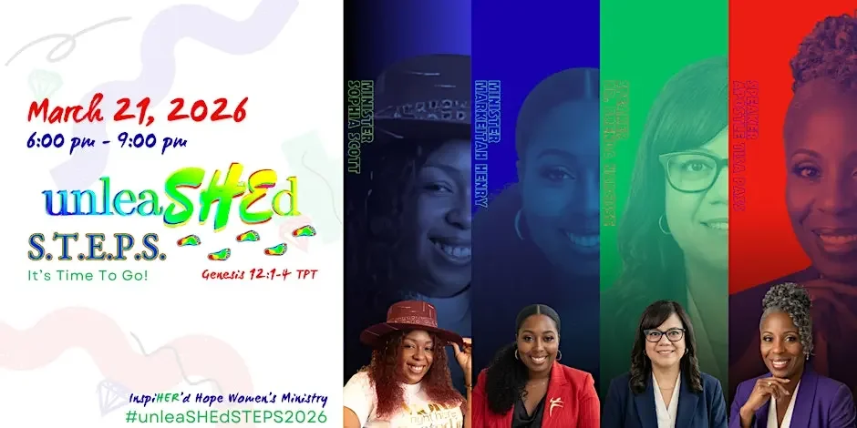 “SHE” represents the bold release of the woman God created and full of identity, gifts, and divine calling. “S.T.E.P.S.” is our intentional pathway forward: